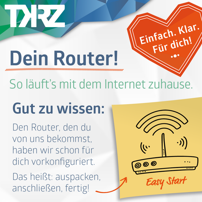 Den Router, den du von uns bekommst, haben wir schon für dich vorkonfiguriert. Das heißt: auspacken, anschließen, fertig.